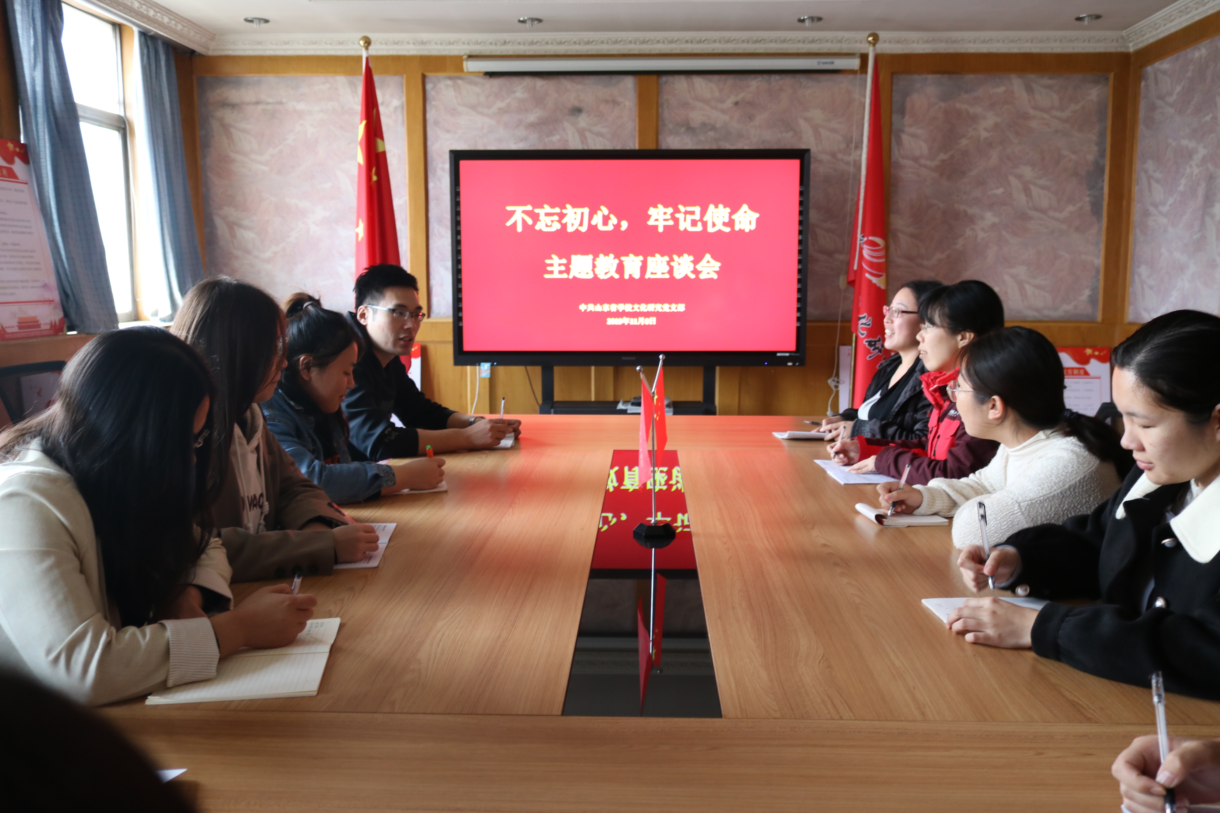 ??为推动“不忘初心,牢记使命”主题教育进一步走向深入,提高党员干部学习理论政策和先进典型的积极性,11月8日,山东省学校文化研究院开展“不忘初心、牢记使命”主题教育座谈会,全体党员和部分业务骨干参加。