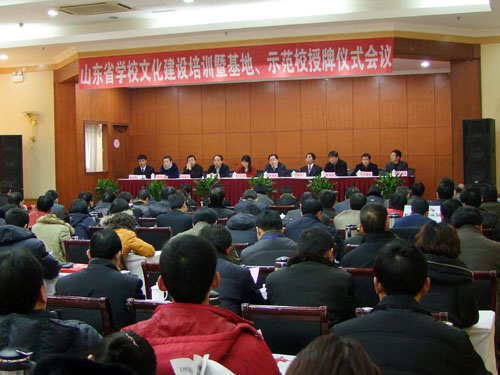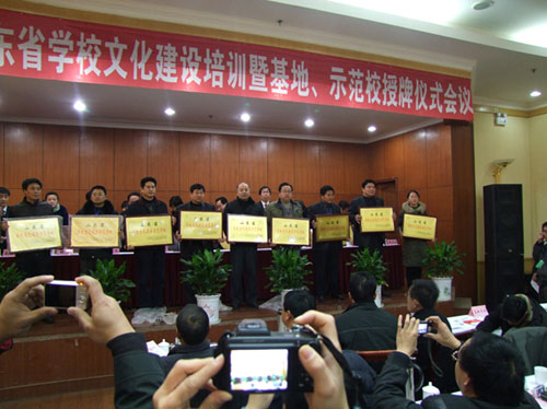 ??2010年12月24至26日,在美丽的泉城济南,由山东省学校文化研究院主办的“山东省学校文化建设培训暨基地、示范校授牌仪式”会议隆重召开。来自全国各地200多所学校负责人近300人参加了会议。山东省教育厅、山东省社会科学界联合会、民进山东省委等领导出席会议并讲话,现代教育报社副总编李艺英应邀出席了会议。