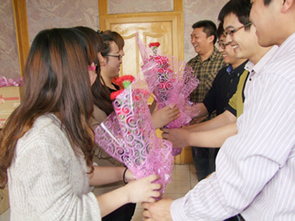 向女同胞献花合影