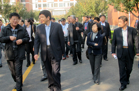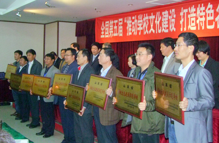 10 月25日 至27日,我院举办的全国第五届“推动学校文化建设,打造特色名牌学?!笔凳┱铰匝刑只嵩谏蕉┌猜≈卣倏?。来自全国各省市的267名代表参加了会议。山东省政协副主席栗甲、教育部政策法规司原副司长张文、山东省教育厅副厅长张志勇、民进山东省委副主委郭永军、江西省教育厅《教师博览》杂志社社长薛农基、泰安市政协副主席张书盈、泰安市教育局副局长苏雪峰等领导出席会议,并对学校文化建设重点研究基地和示范校进行了现场授牌。
