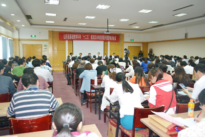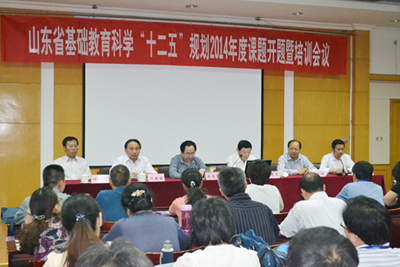 5 月17日 至18日,“山东省基础教育科学‘十二五’规划2014年度课题开题暨培训会议”在济南召开。来自全省17市的170名课题负责任人参加了会议?;嵋橛缮蕉⊙N幕芯吭涸撼ば砀T粗鞒?,山东省社会科学界联合会副主席周忠高、山东省教育厅副巡视员张厚吉出席开幕仪式并作重要讲话。