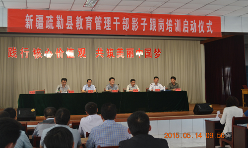 ??2015年5月14日,新疆疏勒县首期教育管理干部影子跟岗培训启动仪式在山东济阳举行。山东省教育厅综合改革处处长张士俊、山东省学校文化研究院院长许福源、新疆疏勒县教育局副局长刘其河、济阳县教育局副局长张自贵出席启动仪式,启动仪式由济阳县教育局教研室主任杨元春主持。