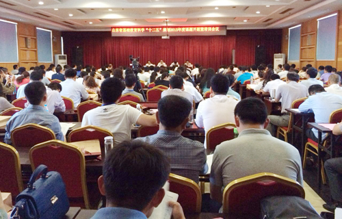5月23日至24日,“山东省基础教育科学‘十二五’规划2015年度课题开题暨培训会议”在济南召开,来自全省17市的227名课题负责任人和来自新疆疏勒县的部分优秀校长参加了培训会议?;嵋橛缮蕉⊙N幕芯吭涸撼ば砀T粗鞒?,山东省社科联党组副书记、副主席周忠高,山东省教育厅副巡视员张厚吉出席开幕仪式并讲话。
