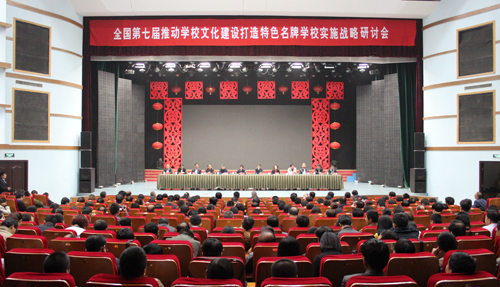 ??为提升学校办学品位,促进学校内涵式可持续发展,构建特色鲜明的文化品牌学校,全面提高学校办学水平和教育质量,10月24日,全国第七届“推动学校文化建设,打造特色名牌学校”实施战略研讨会在山东临朐县召开。会议由山东省人民政府督学、省学校文化研究院院长许福源主持。国务院教育督导委员会办公室副主任林仕梁,山东省教育厅副厅长王坦,山东省社会科学界联合会副主席孙淑娜,中国关工委专家委员会副主任林格,山东省人民政府督学、省教育学会副会长亓殿强,山东教育技术装备服务中心主任冯俊华,潍坊市社会科学界联合会主席高文庆,潍坊市教育局副局长韩光福,中共临朐县委常委、宣传部部长郭宝花,临朐县人民政府副县长赵同祥、临朐县教育局局长王学鹏等领导出席开幕仪式,并对学校文化建设重点研究基地学校进行了现场授牌。