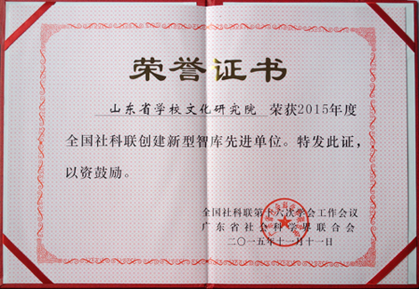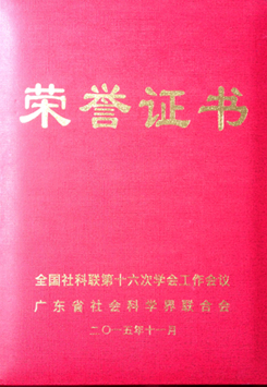 热烈祝贺我院荣获2015年度全国社科联创建新型智库先进单位