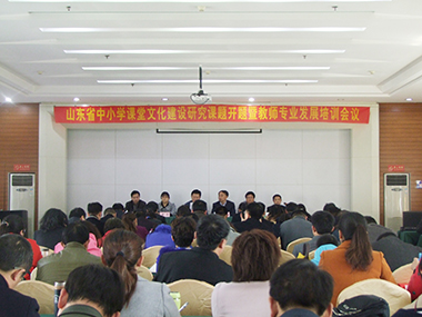 ??3月26日,山东省中小学课堂文化建设研究课题开题暨教师专业发展培训会议在济南召开。山东省教育厅综合改革处处长张士俊,山东省人民政府督学、山东教育学会副会长亓殿强,山东省社会科学界联合会社团部部长徐青,齐鲁师范学院科研处处长林成策,中国管理科学研究院思维科学与教育研究中心常务副主任张玉乐出席开幕仪式,并对首批“山东省中小学课堂文化建设重点实验学校”进行了现场授牌。开幕式由山东省人民政府督学、省学校文化研究院院长许福源主持。