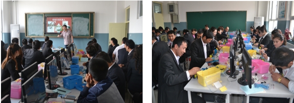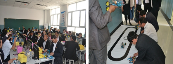 ??2016年4月26日至28日,我院在疏勒县教师培训学校成功举办科技教育教学培训班。对疏勒县80名信息技术教师进行了全面、系统的教学“机器人”课程培训。