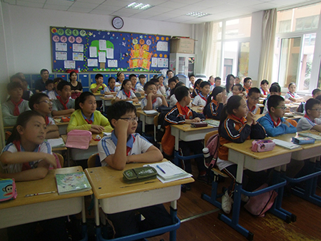 青岛市崂山区实验小学坐落于青岛市崂山新城区中心,依山傍海,风景秀丽。学校成立于2003年,现占地35亩,建筑面积12000余平方米,现有教学班32个,学生1500余人,教职工87人。其中,省特级教师1人,青岛市名校长培养人选1人,崂山区名师培养人选5人,区市教学能手22人。调研期间,专家组在学校领导的陪同下,对学校整体办学环境进行了实地勘察,并与学校领导及部分中层干部、一线教师代表进行了座谈交流。之后,专家组走进课堂,观摩示范课、体验课堂文化,进一步感受了学校师生自主合作、灵动至美的姿态和热情。