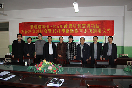 ??2016年11月7日至12日,我院专家组一行七人赴新疆疏勒县镇泰小学和牙甫泉镇巴扎中心小学,对两所学校进行了托管培训总结验收和3D打印创新教育系统捐赠活动。