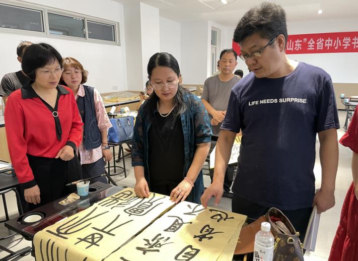 ??本次培训由山东省学校文化研究院、山东省教育发展促进会书法教育专业委员会主办,邀请中国书法家协会会员、北京大学访问学者、山东省文艺评论家协会会员耿仁坚,教育部主管规范汉字书写专业委员会理事、教育科研组副组长、哈尔滨工业大学(威海)书院导师杨景舒,为教师们开展现场授课,邀请山东省书法家协会理事、威海青年书法家协会主席徐继斌到会指导参训教师现场书写并进行点评。