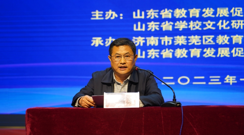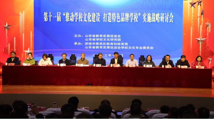 ??2023年11月24日至26日,由山东省学校文化研究院、山东省教育发展促进会主办,济南市莱芜区教育和体育局、山东省教育发展促进会学校文化专业委员会承办的第十一届“推动学校文化建设 打造特色品牌学校”实施战略研讨会在济南莱芜召开。会议开幕式由山东省教育发展促进会秘书长、山东省学校文化研究院院长许福源主持。山东省教育发展促进会专家委员会主席、山东省人民政府参事、民进山东省委原副主委、一级巡视员郭永军;山东省社会科学界联合会原副主席、一级巡视员张宏明;山东省教育厅原一级调研员刘西忠;莱芜区人民政府副区长张立军;山东省教育发展促进会监事长、山东财经大学燕山学院党委书记张建;山东省教育发展促进会学校文化专委会副理事长兼秘书长、齐鲁师范学院原历史文化学院院长、教授李红艳;山东教育电视台融合创新发展培训中心主任王红岩;莱芜区委教育工委常务副书记、区教育和体育局党组书记、局长方威;槐荫区委教育工委常务副书记、区教育和体育局党组书记、局长孙莉;周村区委教育工委常务副书记、区教育和体育局党组书记、局长安伟;槐荫区教育和体育局党组成员、总督学田丽;莱芜区教育和体育局党组成员、总督学邢宝东出席开幕仪式。