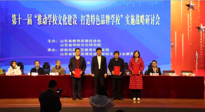 ??会议为山东省教育发展促进会学校文化专业委员会副理事长颁发聘书并对山东省教育发展促进会学校文化专业委员会理事单位进行了现场授牌。
